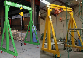 來源:成華鋼絲繩制造廠 發布日期:2021-09-25 14:06 關注次數:小型龍門吊是有手動和電動之分的,手動的也就是利用的手拉葫蘆進行起重,電動的則是利用的電動葫蘆進行起重,那么對于這兩種小型龍門吊該做出何種選擇呢?